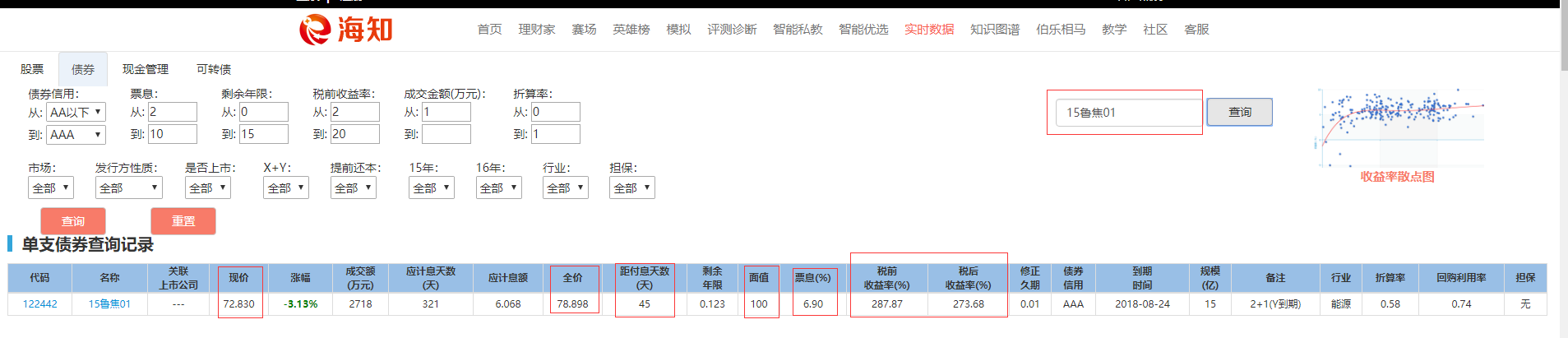 下面我們以海知的實(shí)時(shí)數(shù)據(jù)中的15魯焦01為例來計(jì)算稅前和稅后收益率,