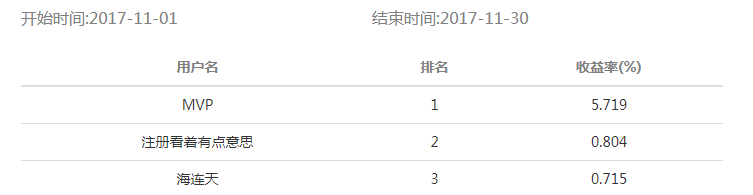 海知理財·2017-11 期比賽結(jié)果公布如下: