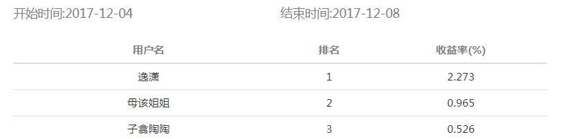 海知理財(cái)·2017-12-1 期比賽結(jié)果公布如下: