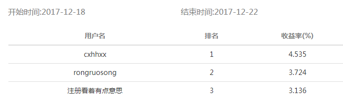 海知理財(cái)·2017-12-3 期比賽結(jié)果公布如下:
