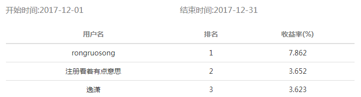 海知理財(cái)·2017-12 期比賽結(jié)果公布如下: