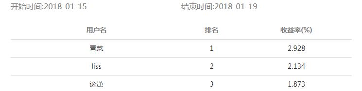 海知理財(cái)·2018-1-3 期比賽結(jié)果公布如下: