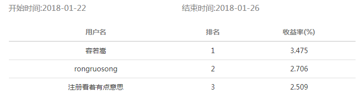 海知理財(cái)·2018-1-4 期比賽結(jié)果公布如下: