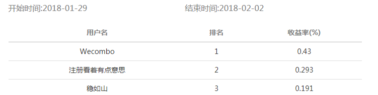 海知理財(cái)·2018-1-5 期比賽結(jié)果公布如下: