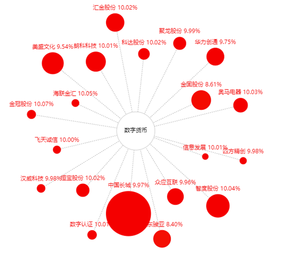 由上可見,與區(qū)塊鏈相關的板塊都有明顯的上漲。尤其是人們最為熟知的區(qū)塊鏈技術:數字貨幣。該概念下的所有個股全部漲停。顯然,區(qū)塊鏈技術以及計算機應用行業(yè)迎來了他們的局部牛市。未來一周將會保持這個漲勢繼續(xù)上漲。