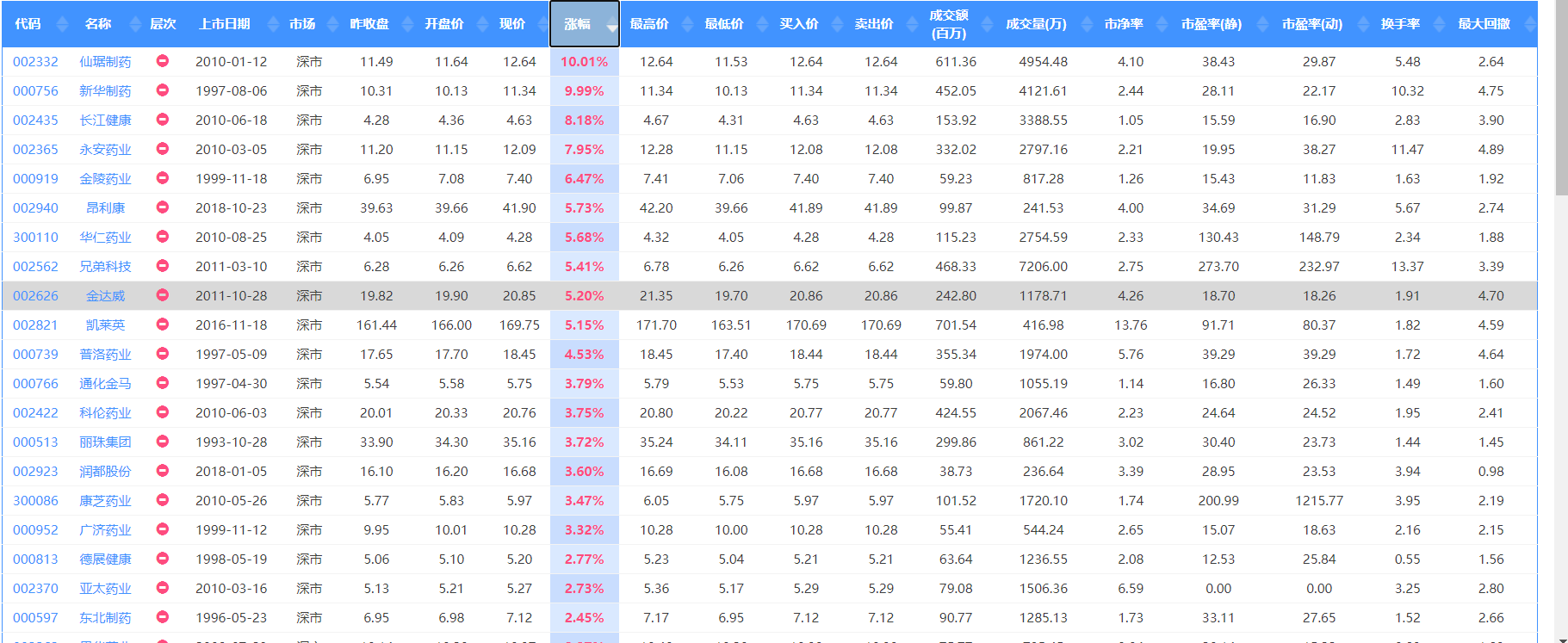 化學制藥板塊全線飄紅,形勢大好。近幾日漲幅均在2%左右。