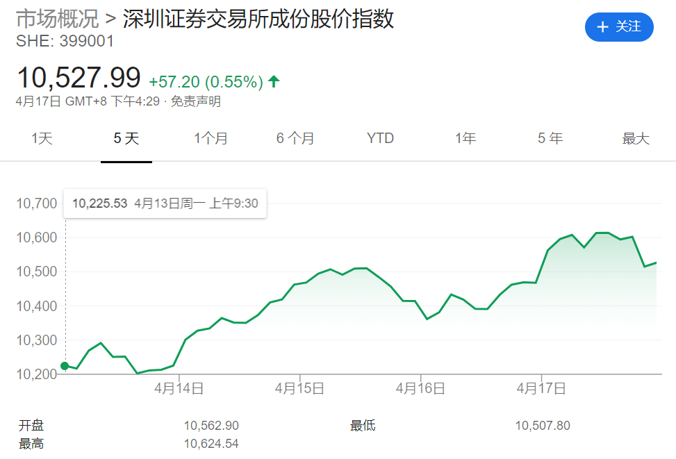周五在一季度經(jīng)濟(jì)數(shù)據(jù)好于預(yù)期的推動(dòng)下,A股各指數(shù)均創(chuàng)出一個(gè)月來的新高,上證指數(shù)連續(xù)4周在2700點(diǎn)徘徊后,本周也突破2800點(diǎn)大關(guān)報(bào)收2838.49點(diǎn),本周上漲1.5%。上證指數(shù)本周收出陽線,周漲幅為1.5%。在2700點(diǎn)區(qū)域徘徊4周后,終于站上了2800點(diǎn)大關(guān)。深市方面各指數(shù)周五也創(chuàng)出一個(gè)月來新高,周漲幅更大一些。深證成指周五報(bào)收10527.99點(diǎn),周漲幅為2.23%。中小板指數(shù)周五報(bào)收6887.65點(diǎn),周漲幅2.72%。創(chuàng)業(yè)板指數(shù)周五報(bào)收2020.77點(diǎn),周漲幅3.64%。
