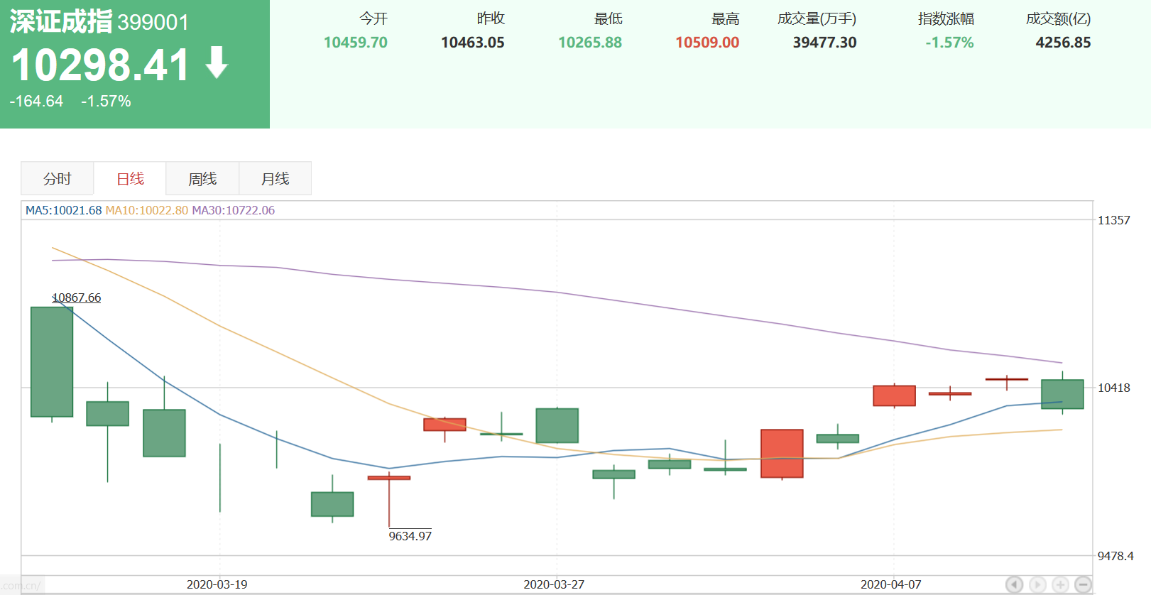 深證成指在最近一周以來,漲幅1.86%,收盤10298.41。