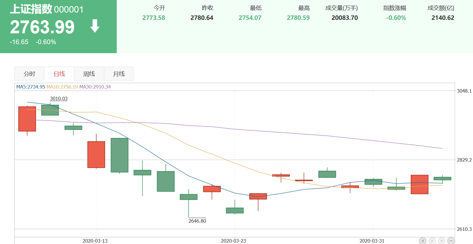 1. 現(xiàn)狀分析:上證指數(shù)在最近一周以來,漲幅-0.30%,收盤2763.99;