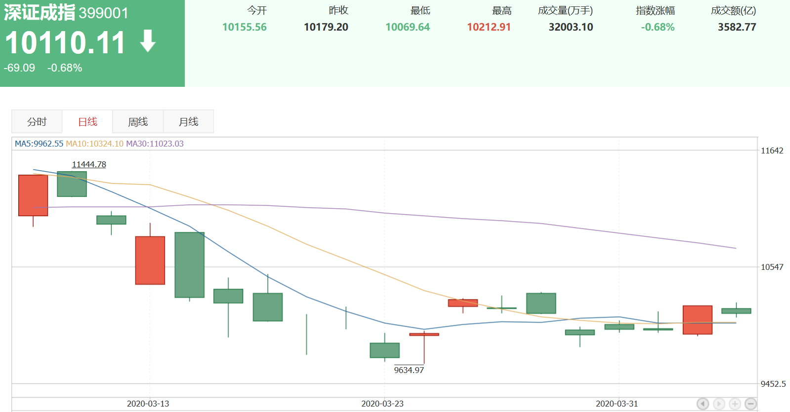 深證成指在最近一周以來,漲幅0.00%,收盤10110.11。