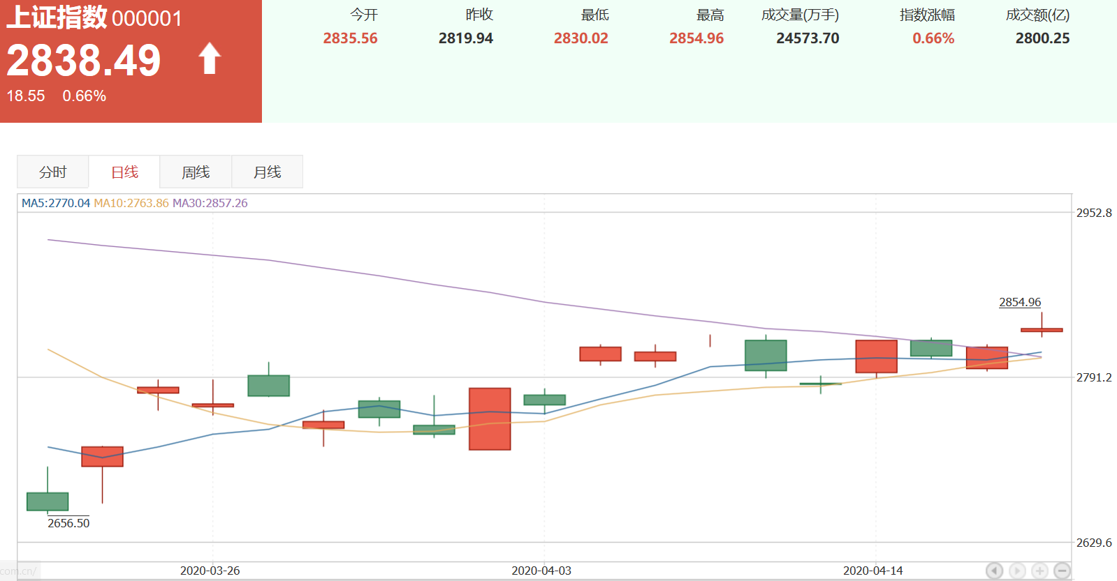 1. 現(xiàn)狀分析:上證指數(shù)在最近一周以來,漲幅1.50%,收盤2838.49;