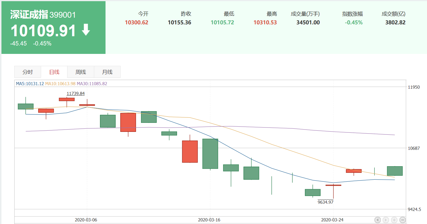 深證成指在最近一周以來,漲幅-0.40%,收盤10109.91。
