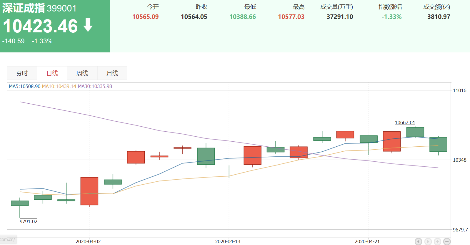 深證成指在最近一周以來,漲幅-0.99%,收盤10423.46。