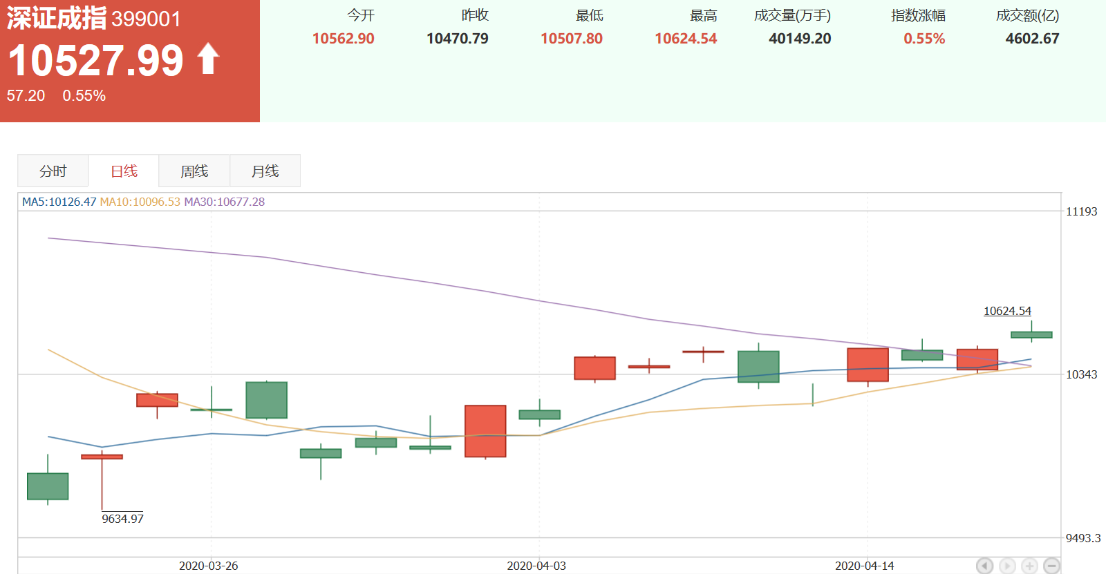 深證成指在最近一周以來,漲幅2.23%,收盤10527.99。