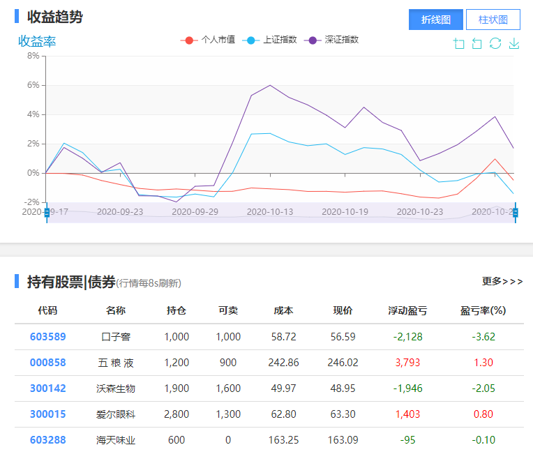本次2020秋-智能證券投資-研-模擬投資賽正式結(jié)束了,在最后關(guān)頭,我操作過于頻繁,把收益率拉上來了一點,無奈大盤風(fēng)險因素太多,最后又下跌了,但是整體還是可以的。