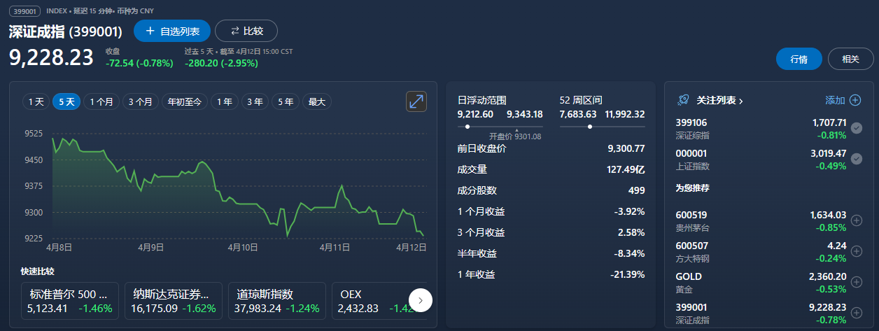 在4月清明假期后的第一周,大盤走勢呈現(xiàn)出震蕩下行的明顯特征。在4月10日,A股市場經(jīng)歷了一段時(shí)間的波動(dòng)后,小幅上漲之后緊接著繼續(xù)震蕩下行。