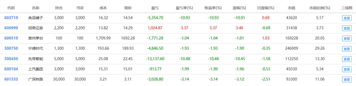 2. 貴州茅臺(tái)最近一周開始回暖,前兩天有加倉(cāng)的打算但是最后沒有行動(dòng)。期待能夠扭虧為盈。